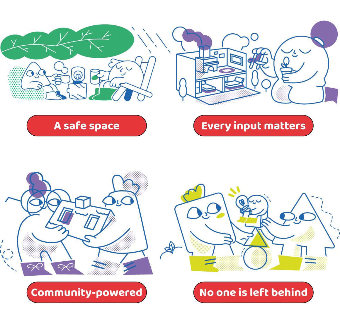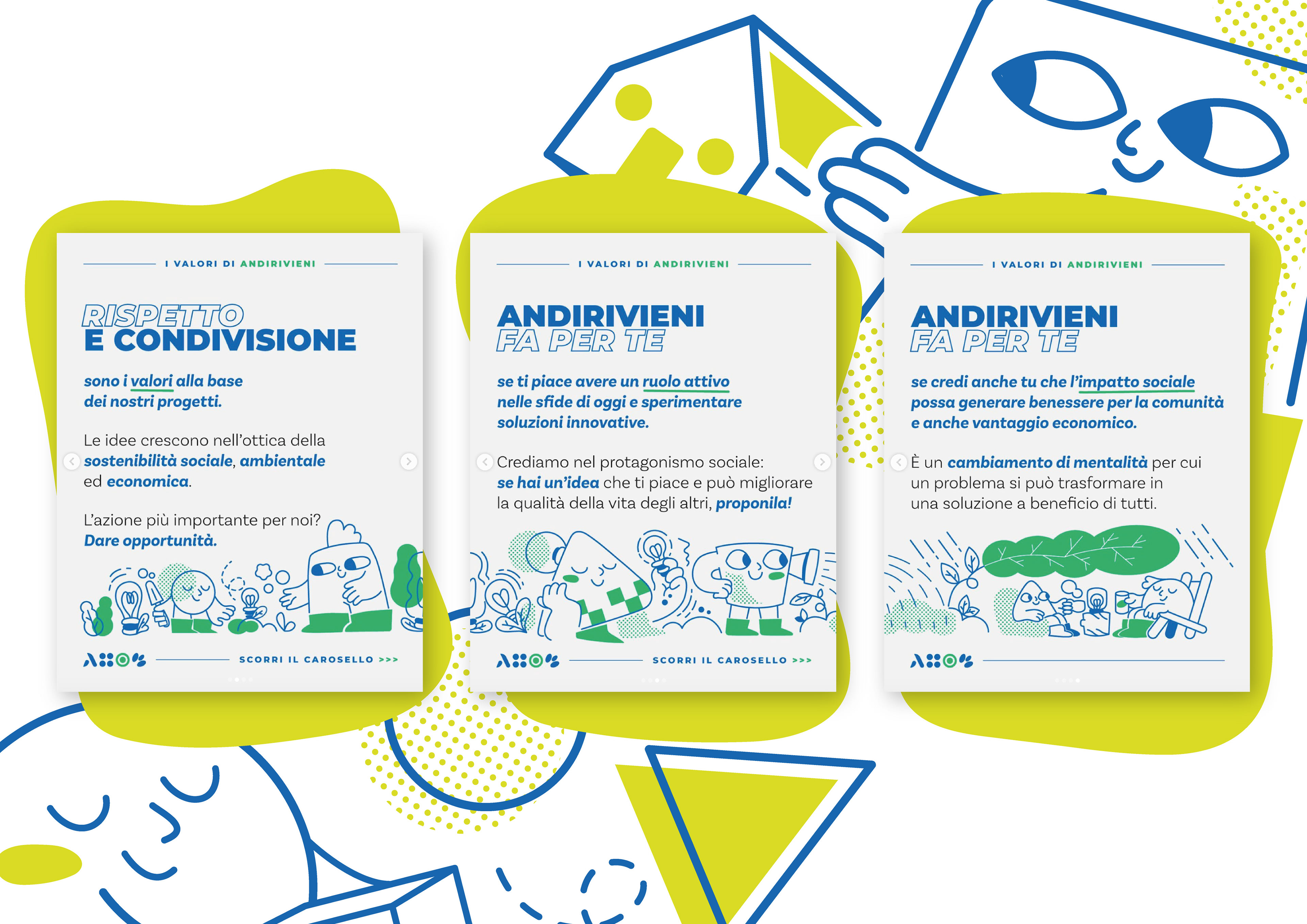 Illustrations for the launch of Andirivieni Cohousing in Busca, Cuneo.
