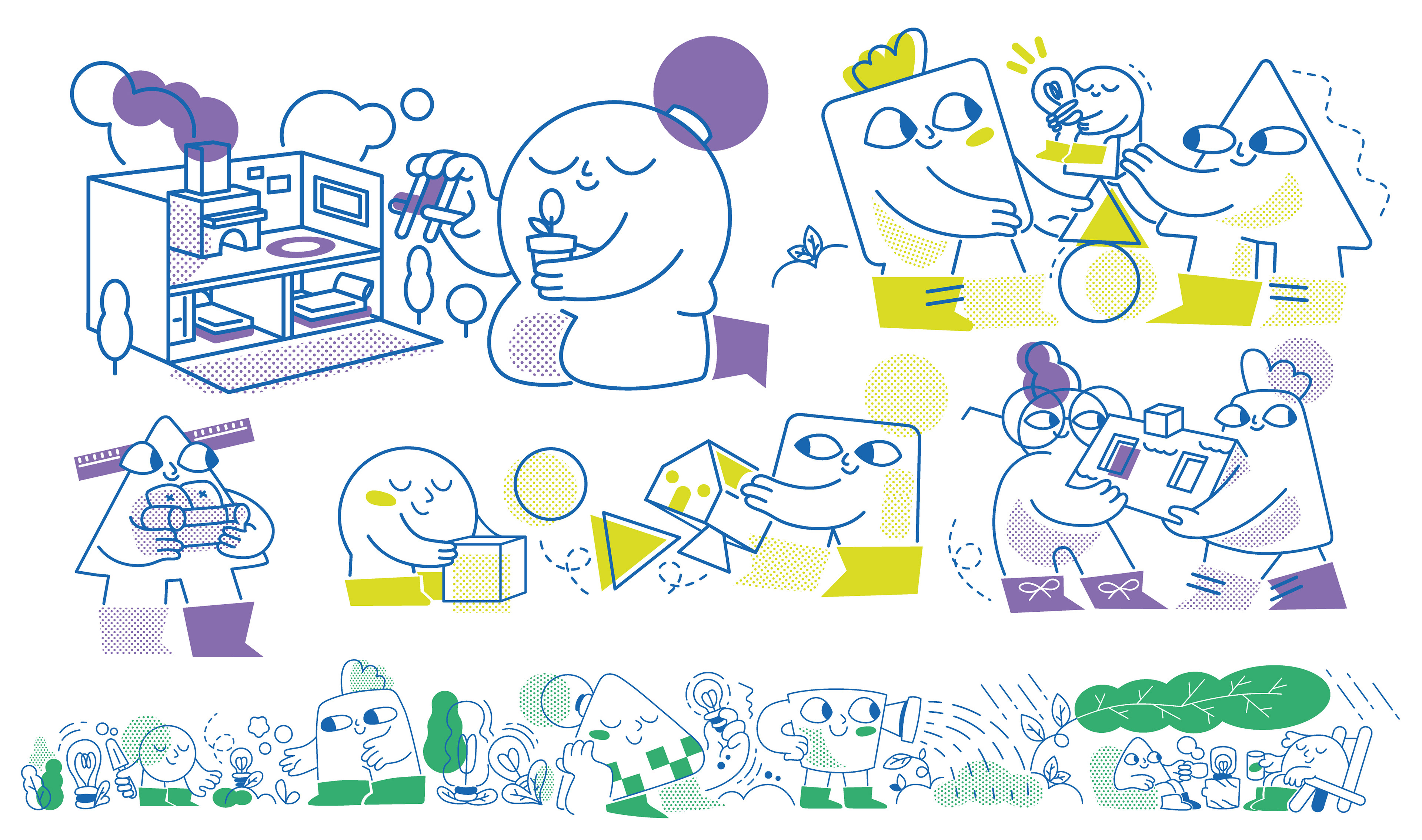 The illustrations were both displayed on panels in the main hall of the building and used on social media and digital communication.