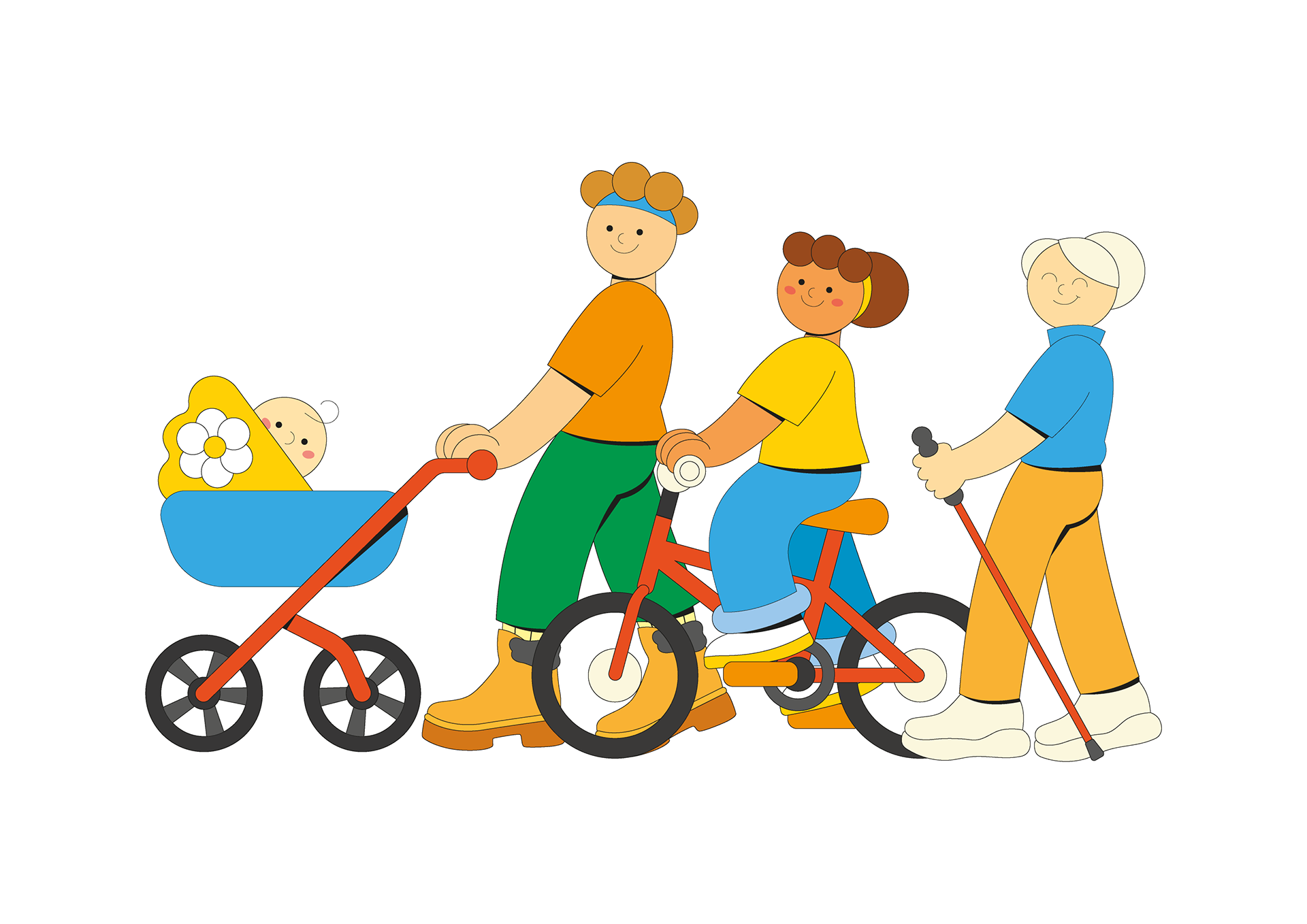 Once the characters were approved, I included them in colorful layouts to be printed and displayed along the trail and on a brochure.