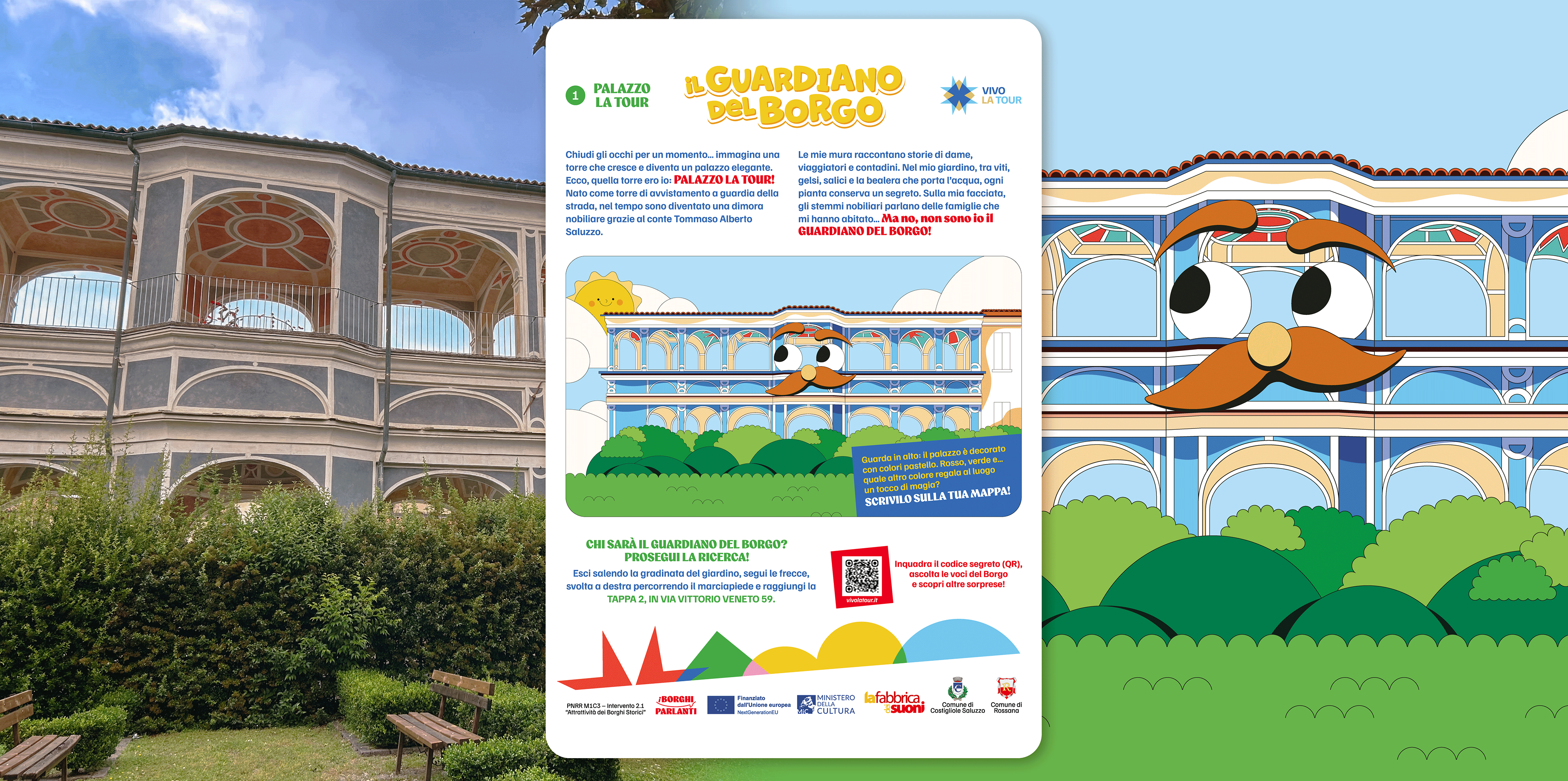 Those who'd follow this path would encounter a series of illustrated panels displaying special characters with their own story and riddles to tell: none other than the very landmarks and iconic buildings of Costigliole.